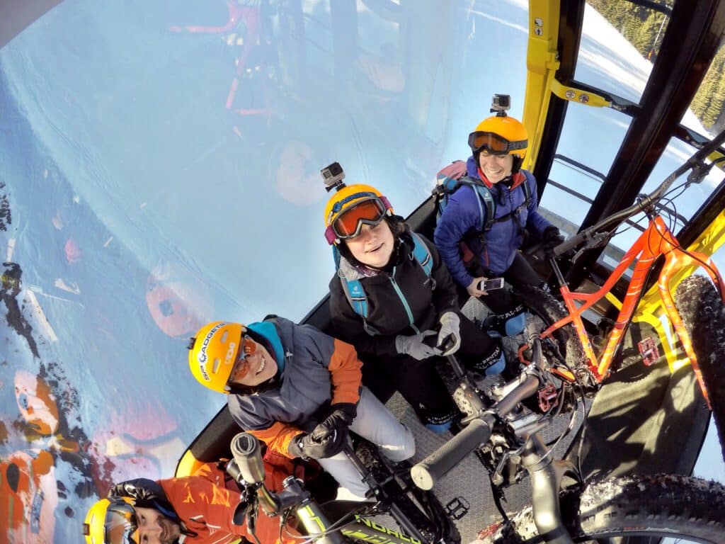 Perfekt ausgestattet mit den Hellga Testbikes von Specialized sowie der Winter Bikebekleidung von Craft kamen wir gegen 10:30 Uhr an der Talstation Hochwurzen bei blauem Himmel und strahlendem Sonnenschein an. Die Bikes zusammengebaut, die Protektoren angelegt und die Helmkamera gestartet, ging es auch schon mit der Gondel hoch hinaus.