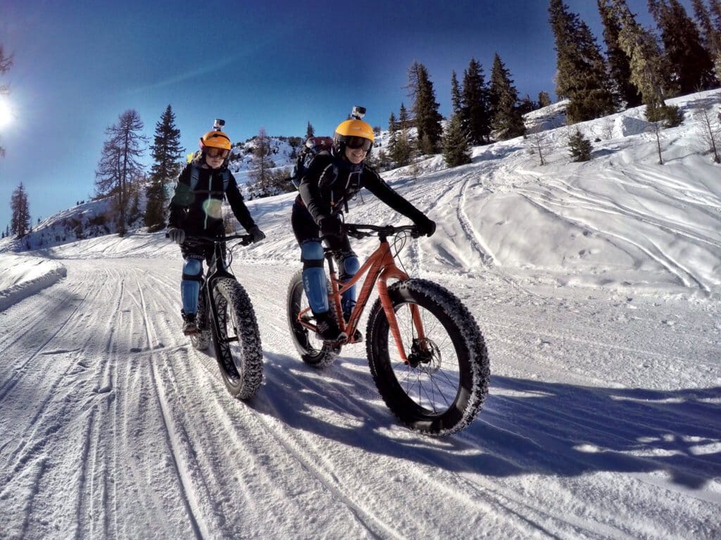 Fatbiken im Schnee: Zwei Ladies sorgen für neugierige Blicke.